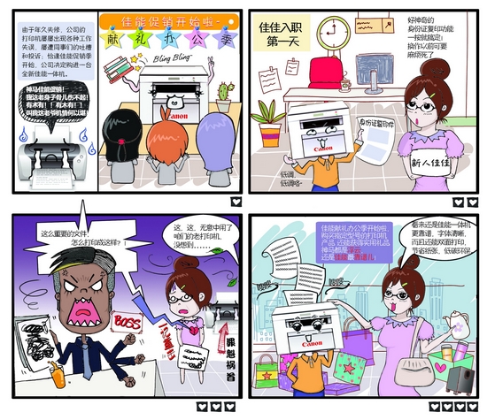 这不,佳佳的新公司在“献礼办公季”期间便购置了一部崭新的佳能激光一体机,巧的是,它竟然是与佳佳同一天“入职”。不过,这部佳能激光一体机第一天却抢了大风头,同事们纷纷围观赞叹,旁边那部老机器则黯然流泪中。