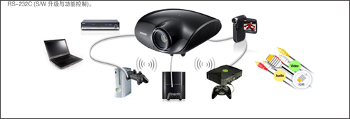 不仅是出众的投影效果,三星A600B还充分考虑到家庭用户实际应用当中的需要,配备了齐全的接口,如HDMI、Component、S-Video、Composite、PC输入(D-sub15 pin)及RS-232C(S/W升级与功能控制)等一应俱全。丰富的接口使得A600B可以驱接多种设备,比如HDPC、蓝光、DVD机、PS3游戏机等,因此A600B可以让家庭用户在感受无与伦比的视觉体验同时,还可以让您尽情享受娱乐生活带来的轻松与畅快!