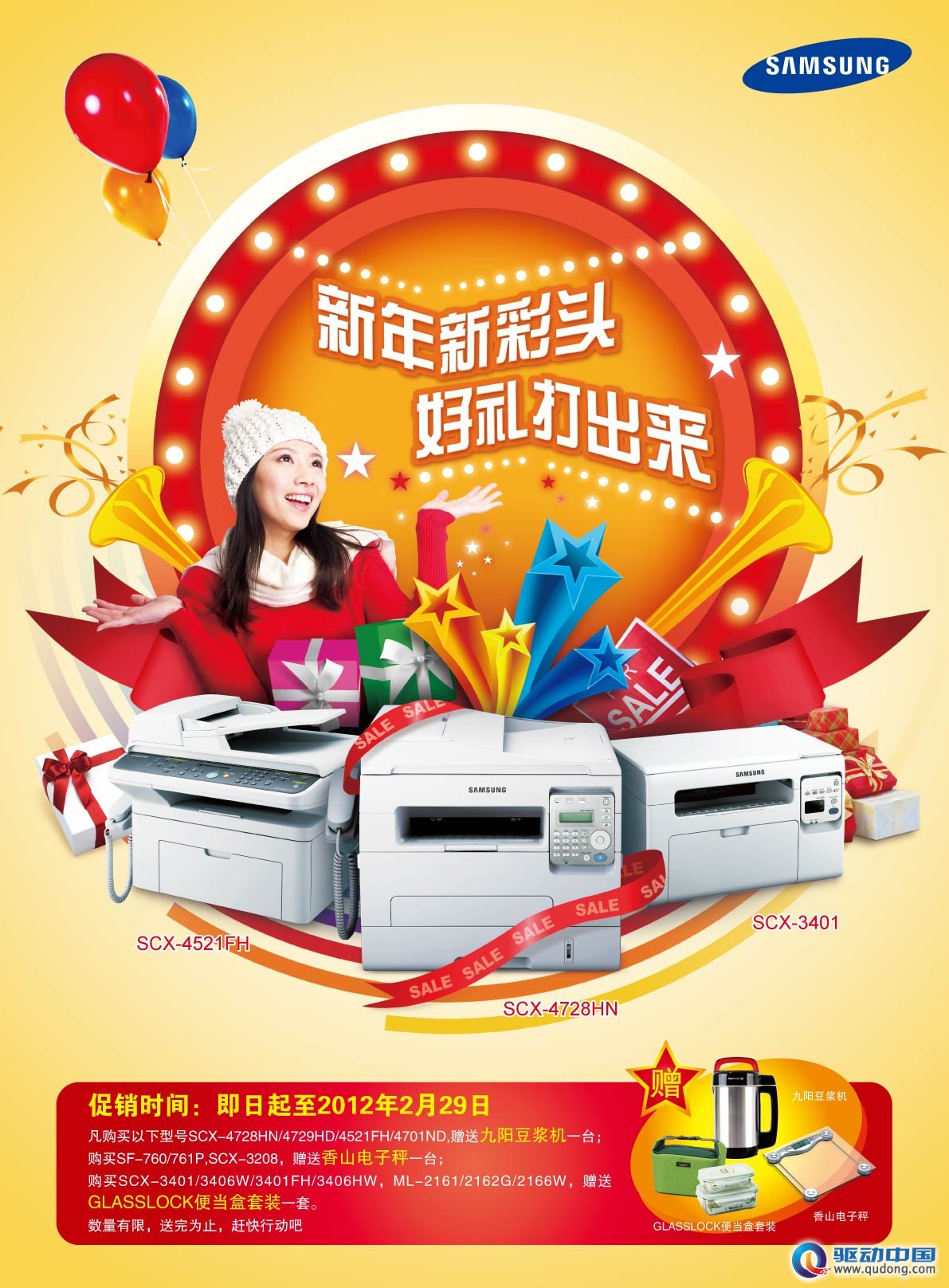可以说,作为三星2012年的开年大献礼,此次促销活动涉及的产品类型非常丰富,能满足不同用户的所有需求。活动时间一直持续到2月29日。鉴于三星打印机的超高性价比和此次声势浩大的促销活动,建议心动的朋友们还得赶快行动,数量有限,一定要抓住机会!