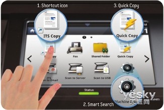 三星A3数码复合机的强化设计,还能够帮助用户提高办公效率,节省成本。操控流畅的7“彩色触摸屏为使用三星A3数码复合机的用户带来最大化的操控和视觉体验。友好直观的智能用户界面,拥有多达40个快捷方式图标。只需使用键盘输入内容即可快速搜索到具体功能,即使最复杂的工作,也能轻松管理和控制。为了提高用户扩展性,三星还提供了一系列丰富的内置解决方案,如设备管理、文件解决方案、安全解决方案及移动解决方案,充分满足用户的办公需求。