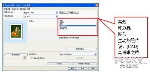 此外,LBP7110Cw/7100Cn还为用户提供了多种打印模式,涵盖印刷品、图形、照片、设计制图、高清晰文本等模式,用户可根据打印文档的内容选择适合的打印模式。尤其是在打印照片、含有精细彩色线条的设计制图或包含许多小字符的原稿时,设置相应的打印模式能够使彩色输出更加生动、准确,避免细微的色彩损失。