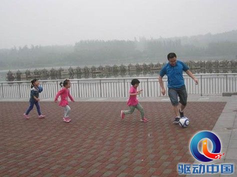 徐云龙挑选出的乐拍组获奖照片——父亲带着三个孩子享受足球的乐趣。足球不仅是一种健康的运动,更寄托了人们的希望