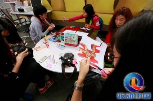 参赛选手用佳能喷墨打印机打印出的五彩图案体验折纸乐趣