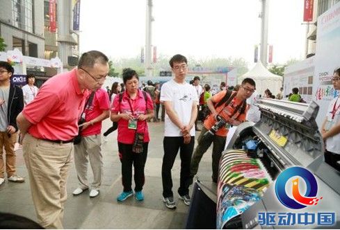 参赛选手在体验佳能大幅面打印机的打印效果