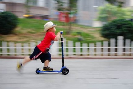 挑战组“初夏”主题金奖获奖作品——脚踏滑板车快速滑行的男孩