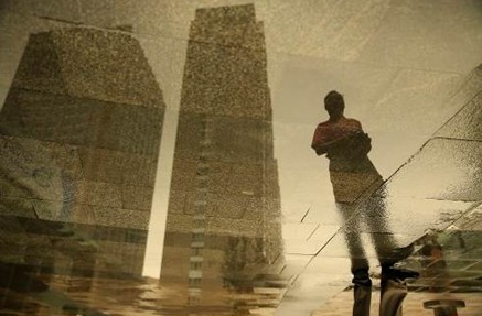 挑战组“光影”主题铜奖获奖作品——水面倒映的楼宇和行人